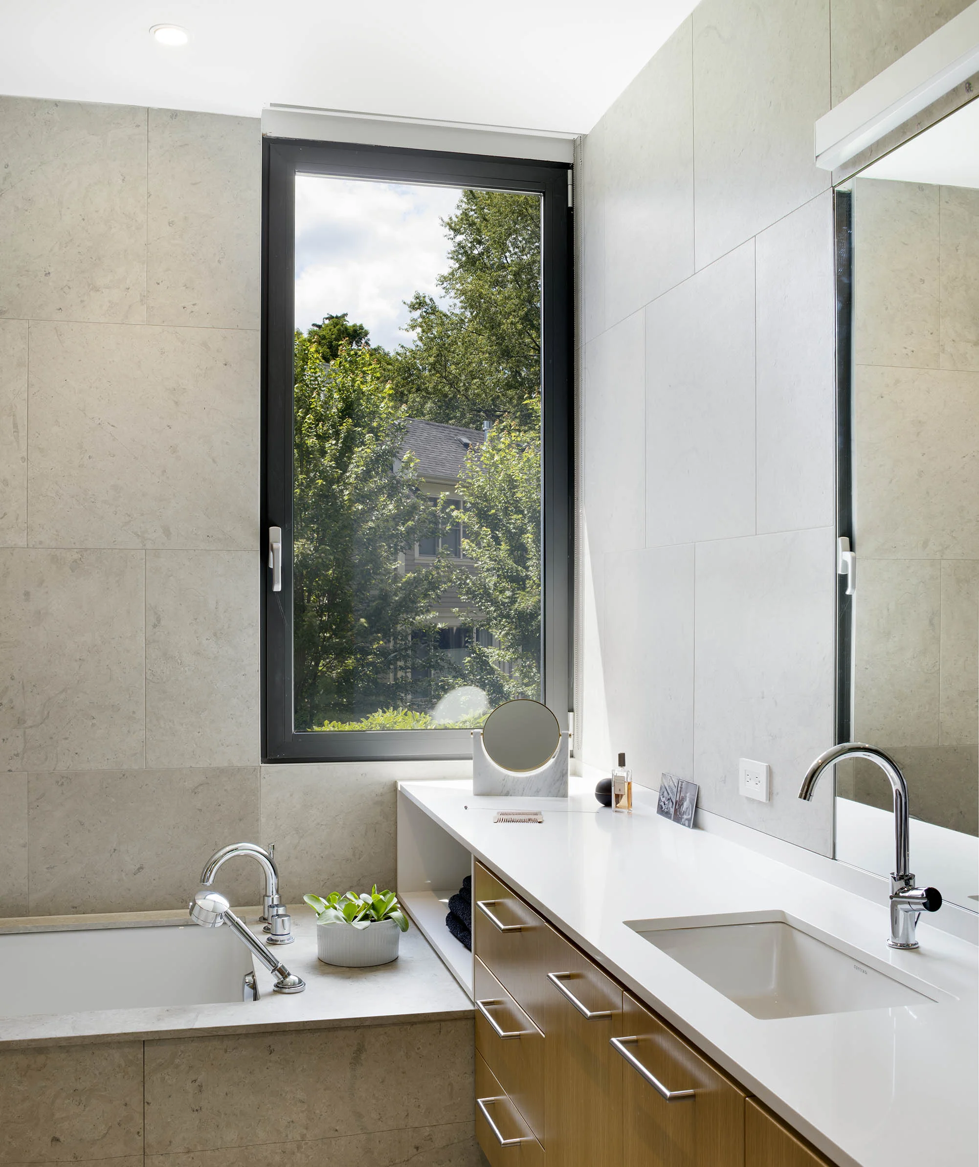 "The lush planting and unique design details in this contemporary residential garden offer a fresh, bold aesthetic within a suburban neighbourhood. Strong connections between the indoor and outdoor spaces, frame views from within the house, and create thoughtful transitions from one outdoor space to the next. The materials and colours used provide a strong integration with the design language of the house and unique details were tailored to provide a bold contemporary aesthetic. A mix of ground covers, mid-height plants and taller plants creates a plant palette that is more resilient, dense and biodiverse. Lush plantings, contrasted with clean lines of wood, concrete and metal elements is a design that is at once bold and innovative, but – as clusters of daisies graze the metal screens - also delicate and at times playful."