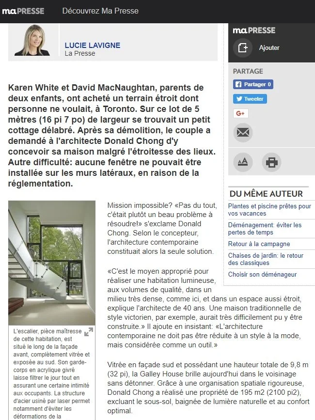 Galley House Featured in La Presse September 19, 2010 in News Return to NewsReturn to GalleyFor the full article please click on the source below